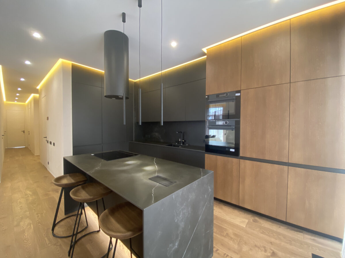 New branded 3 BR apartment after complete design renovation located on Bulvarno-Kudriavska street 17A in the Yaroslaviv Grad Residental Complex in the historical center of Kyiv for $3500+utilities per month for long-term rent. The building is situated within 10 min walk from Golden Gates metro station.