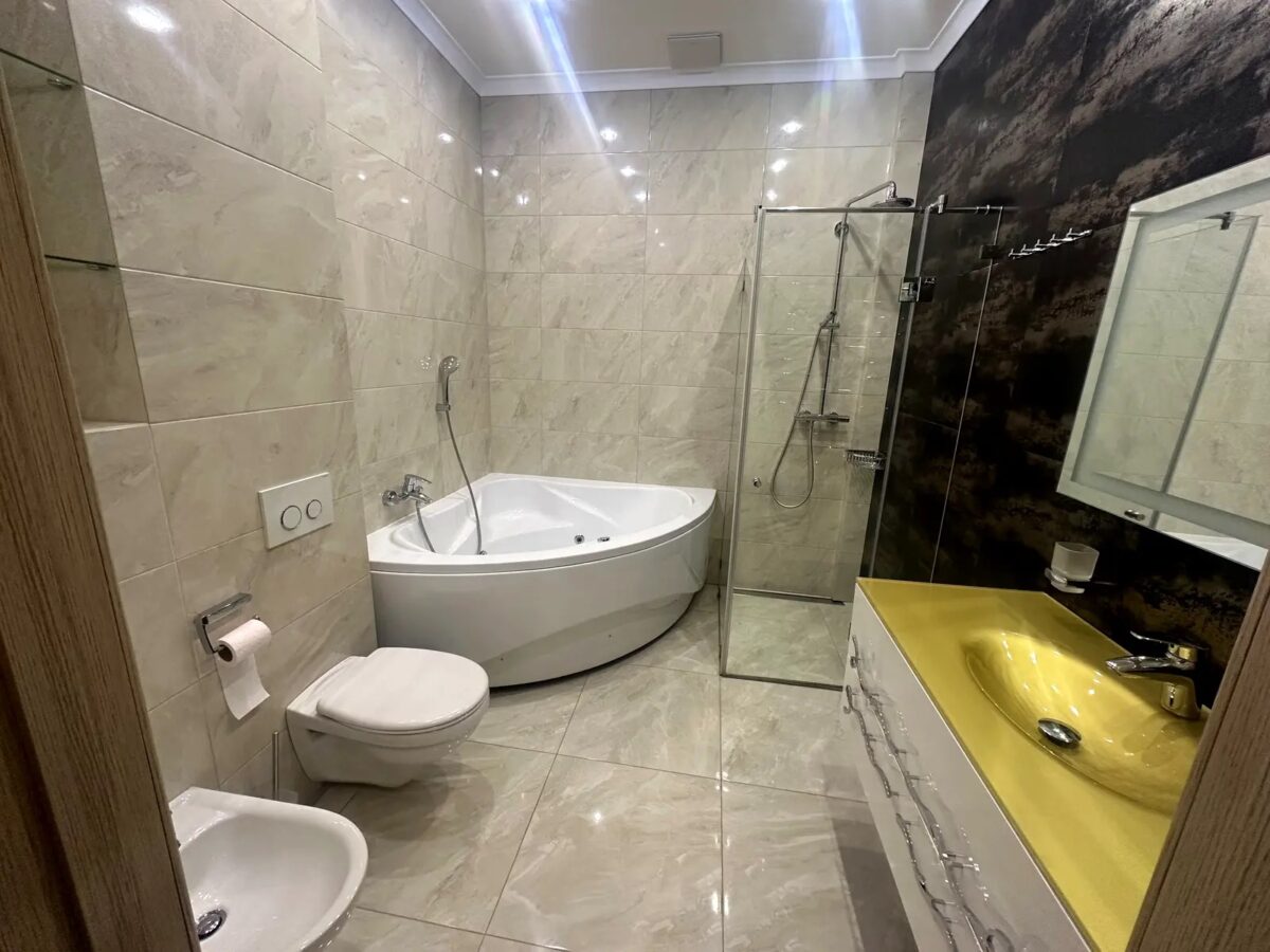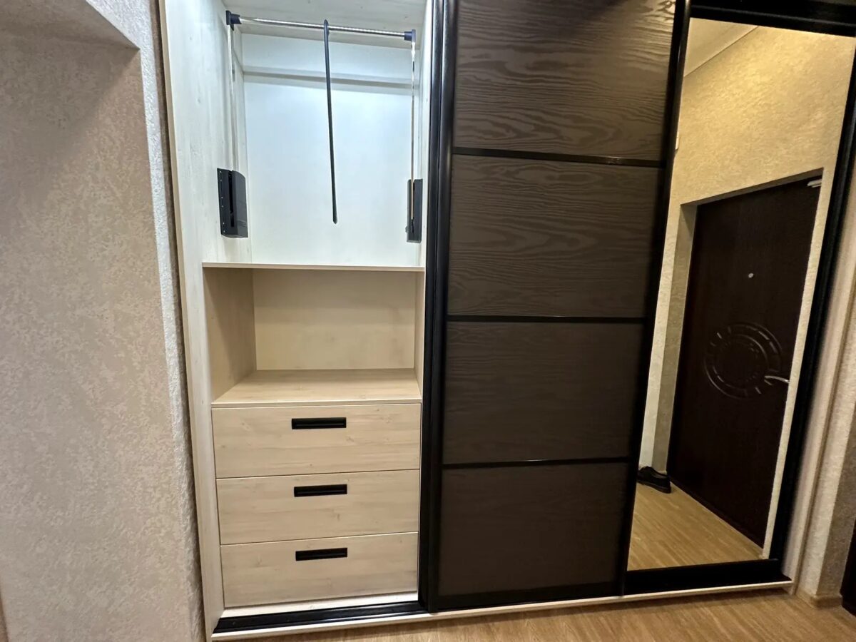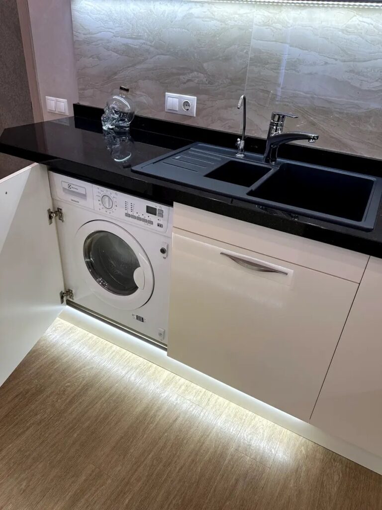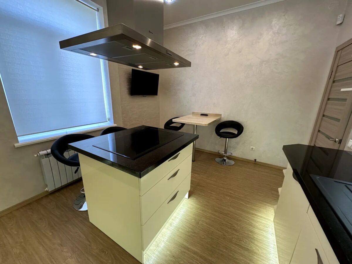 The interior has been thoughtfully designed to ensure both style and functionality. The layout includes a spacious living area, a comfortable bedroom, and a well-proportioned kitchen. Every detail has been carefully considered, from extensive built-in storage solutions to underfloor heating throughout the apartment. The property is fully equipped with brand-new appliances from top global brands, creating a turnkey living experience ideal for discerning buyers seeking apartments for sale in Kyiv.