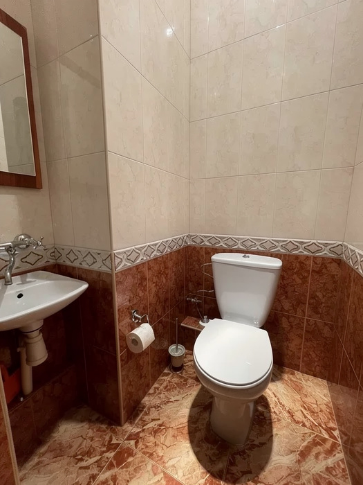 The apartment spans 87 sqm and boasts an impressive ceiling height of 4.10 metres, enhancing the sense of space and grandeur. The thoughtfully designed layout includes a bright living area, two comfortable bedrooms, and a separate kitchen fitted with built-in furniture and appliances. Interior finishes feature laminate flooring, tiled surfaces, and double-glazed windows, all contributing to a comfortable and functional living environment.