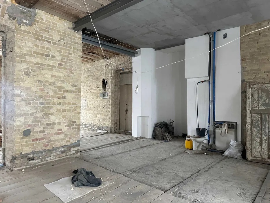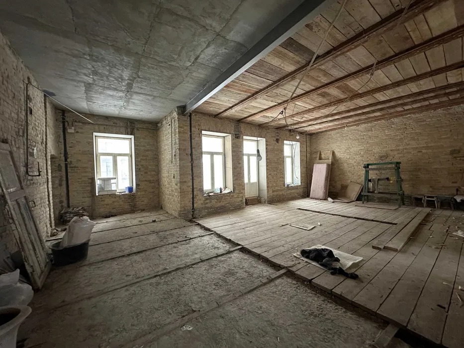 The apartment spans 150 m² and features impressive architectural proportions typical of early 20th-century Kyiv architecture. Large windows fill the space with natural light, while open balconies overlook the tranquil courtyard and surrounding historical buildings. With high ceilings and classical layout proportions, the property preserves the elegance of the historical building’s Kyiv architecture, making it a perfect foundation for a sophisticated renovation project.
